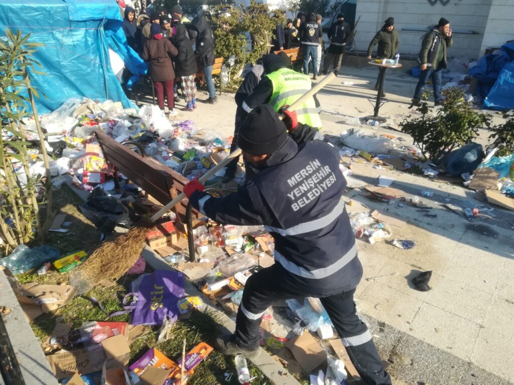 Türk Tabipler Birliği dikkat çektiği afet bölgelerindeki çöp yığınlarının salgın hastalıklara yol açabileceği uyarısı yapmıştı. Yenişehir ve Akdeniz Belediyeleri de halk sağlığını tehlikeye atan çöplerin toplanması için 2 gündür afet bölgesinde temizlik ve hijyen çalışmalarını arttırdı.