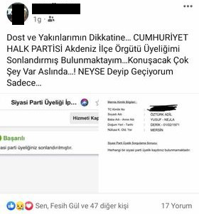 Son olarak Akdeniz ilçe örgütünün kongresi sonrasında üyelerin istifaları başladı. Parti emekçisi bir çok isim istifalarını sosyal medya üzerinden duyurmaya başladı bile.