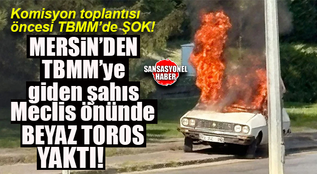 Mersin’den Ankara’ya gelen 57 yaşındaki M.E.F., TBMM önünde 90’lı yıllardaki faili meçhul olaylarının simgesi olarak bilinen ‘beyaz toros’ marka aracı ateşe verdi.